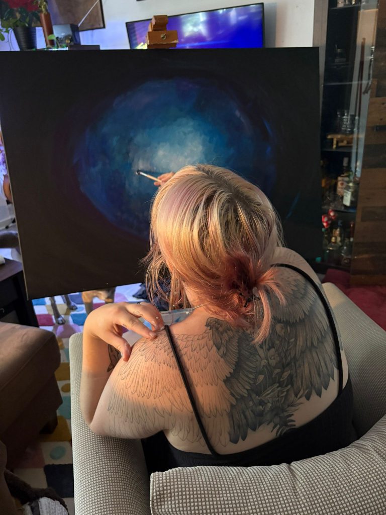 In meinem Atelier widme ich mich der Erschaffung emotionaler Kunstwerke, die die Verbindung zwischen inneren Zuständen und sichtbarer Form erforschen. Meine Arbeiten entstehen oft aus Phasen der Stille, Überforderung oder Heilung – sie sind Ausdrucksversuche, wenn Worte fehlen. Die Kunst bewegt sich an der Schnittstelle von Kunst und mentaler Gesundheit: Es geht darum, Verletzlichkeit sichtbar zu machen und Räume zu schaffen, in denen sich andere wiederfinden können. Neben meinen Bildern findest du hier auch Blogbeiträge über emotionale Prozesse, psychische Themen und die leisen Zwischentöne des Lebens. Atelier Momentum ist Einladung und Zuflucht zugleich – ein Ort für ehrliche Emotionen, Reflexion und sanfte Kreativität.